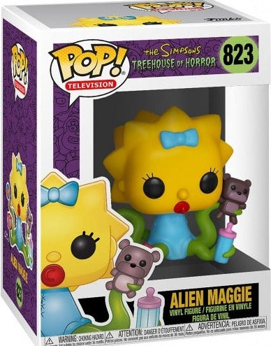Funko Pop The Simpsons Treehouse of Horror Alien Maggie 823: Join the extraterrestrial fun with the Alien Maggie Funko Pop from The Simpsons Treehouse of Horror. This collectible captures the adorable yet eerie transformation perfectly.