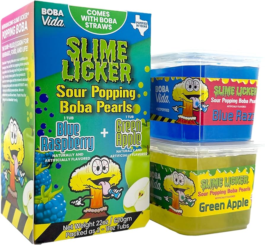 Slime Licker - Sour Blue Raspberry and Green Apple Boba Pearls Tubs