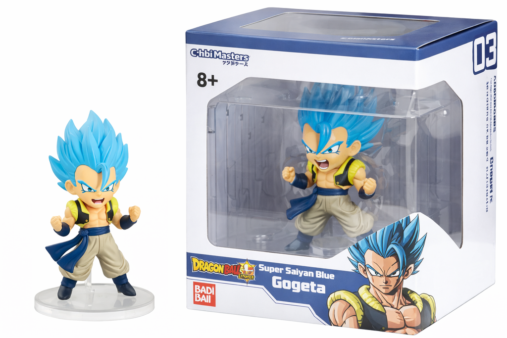 This Chibi Masters Super Saiyan Blue Gogeta 03 figure captures the legendary fusion warrior from Dragon Ball with vibrant detail and a compact design that looks incredible on any anime shelf.