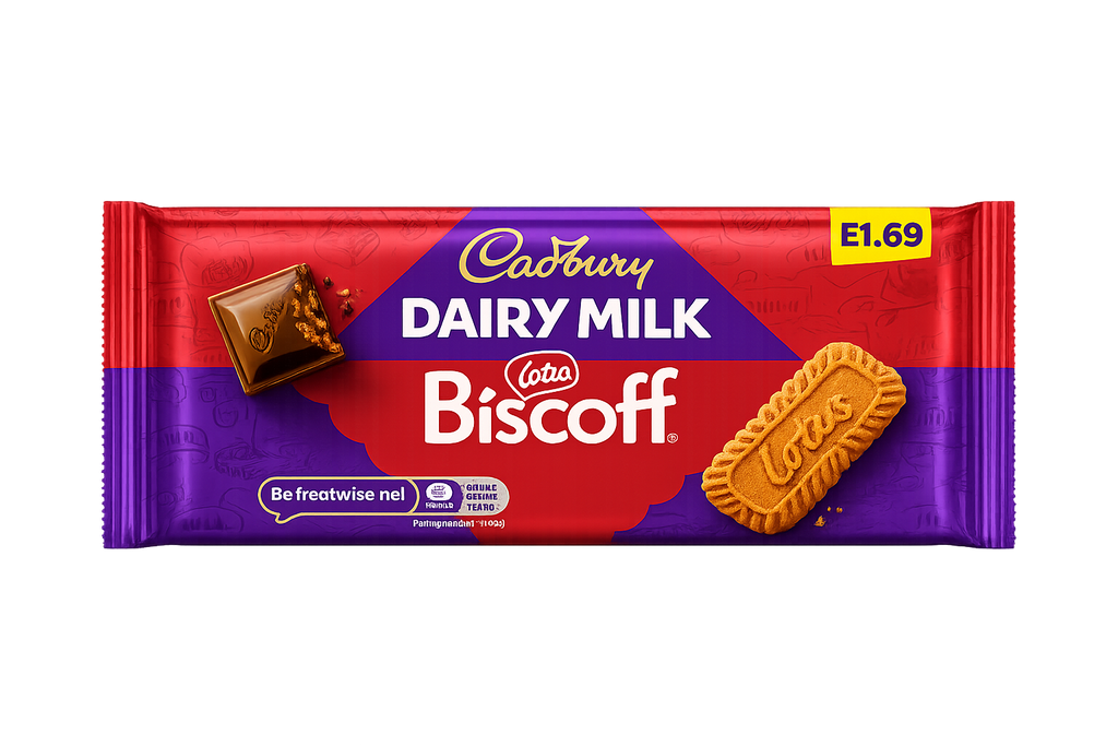 Creamy milk chocolate meets crunchy caramelized cookie magic. 🍫✨ This UK-exclusive Cadbury Dairy Milk blends smooth chocolate with Lotus Biscoff’s iconic spiced biscuit flavor for a rich, dessert-inspired bar that hits every sweet craving.