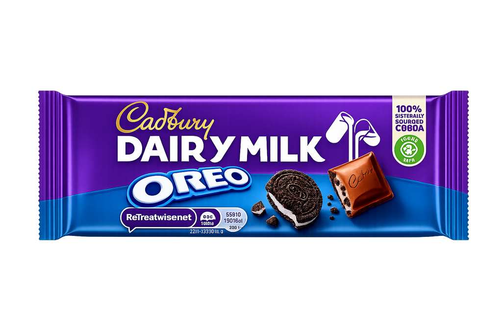 This Norway-exclusive Cadbury Dairy Milk Oreo bar blends smooth European milk chocolate with chunks of Oreo cookie and sweet cream filling for the ultimate chocolate-cookie combo.