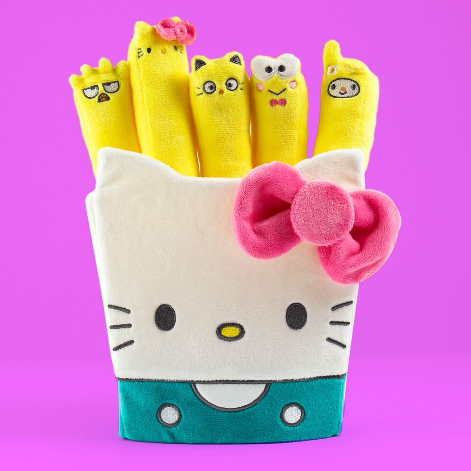 Serve up cuteness with the Kidrobot x Sanrio Hello Kitty Plush Fries 🍟🐱! This limited edition 10″ plush transforms Hello Kitty into an adorable french fry container, crafted from ultra‑soft materials with detailed embroidery. Pop in the five detachable “fry” plush friends—each representing a beloved Sanrio character and equipped with velcro bottoms to stick in the box—for an interactive display that’s as playful as it is charming. Perfect for collectors, Sanrio enthusiasts, or anyone looking to add a kawaii twist to their décor—snack on smiles and bring home this whimsical set today! 🛍️✨
